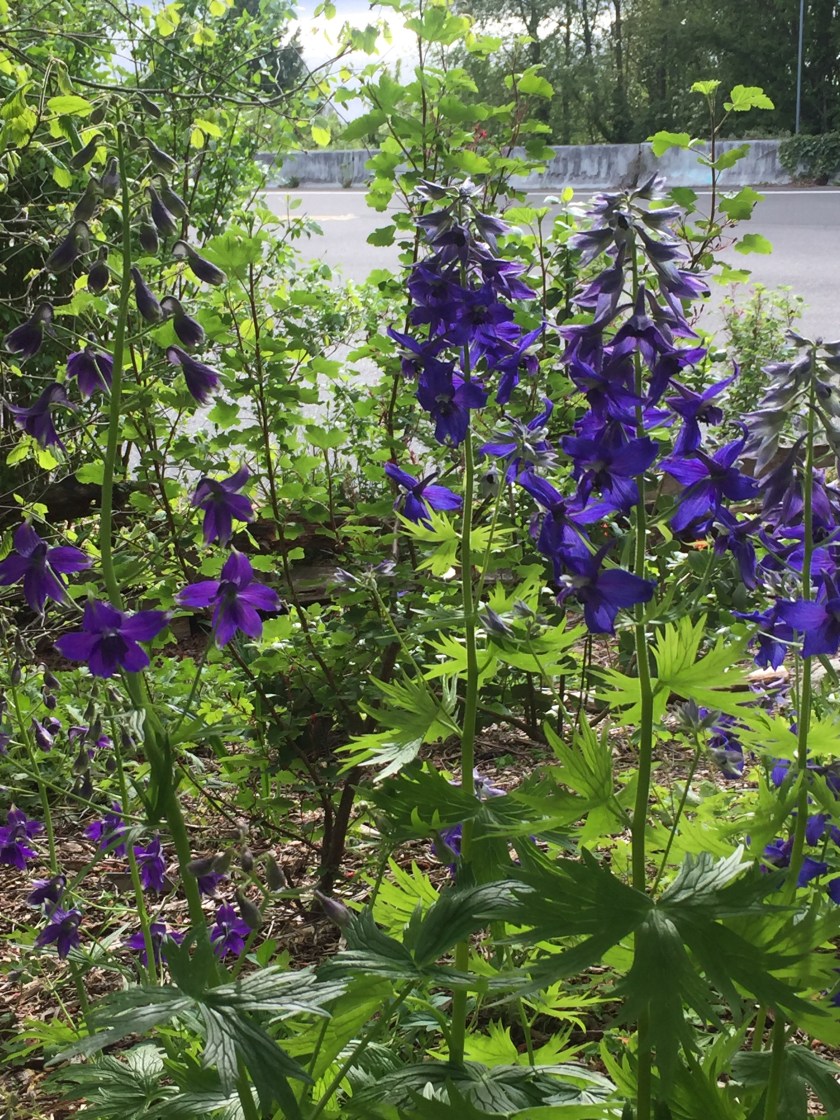 Below are Delphinium and a small patch of Vanilla Leaf from a couple of years ago, which is now spreading slowly in a couple of areas….need to update pix this year for a few of these I see: